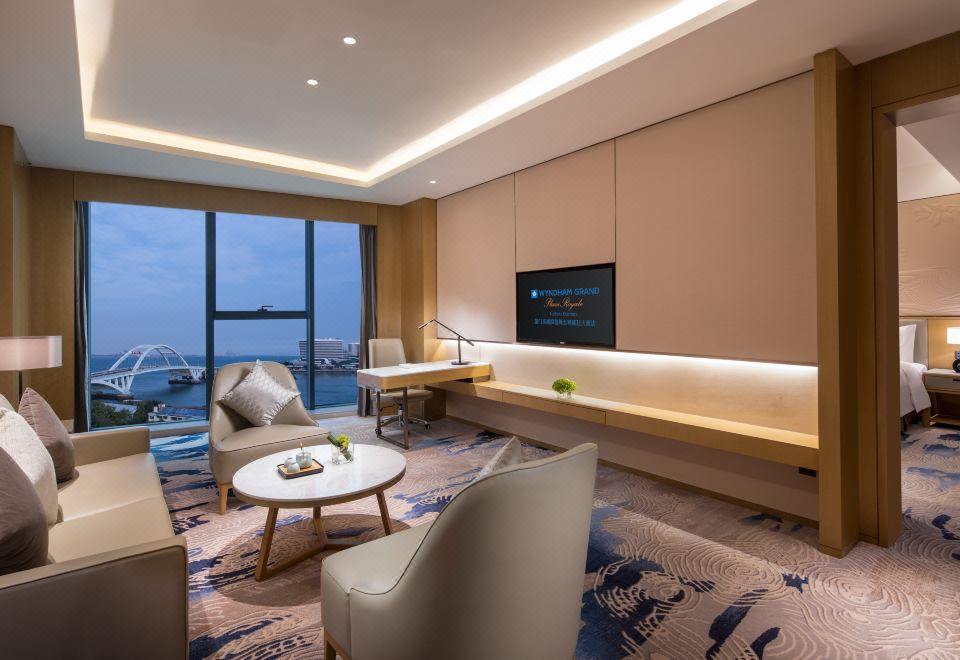 厦门禹洲温德姆至尊豪廷大酒店位于厦门市五缘湾具有特色的核心区域,毗邻环岛路,紧邻厦门高崎国际机场,15分钟直达厦门国际会议及展览中心。白浪拍岸,鹭腾云海,407间套轻奢格调舒适客房,及尊居酒店高楼层的行政酒廊,将壮阔海景一揽入怀,臻享成功人士优雅品味。
